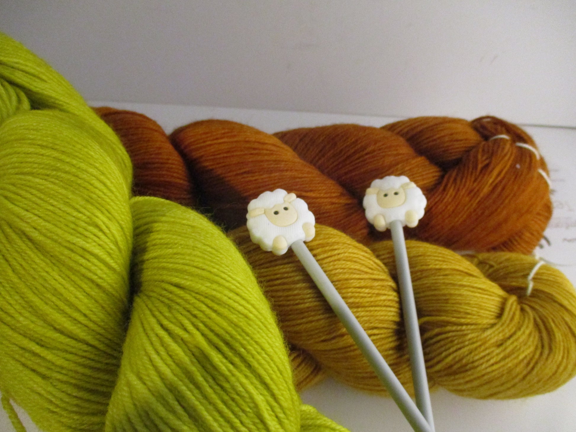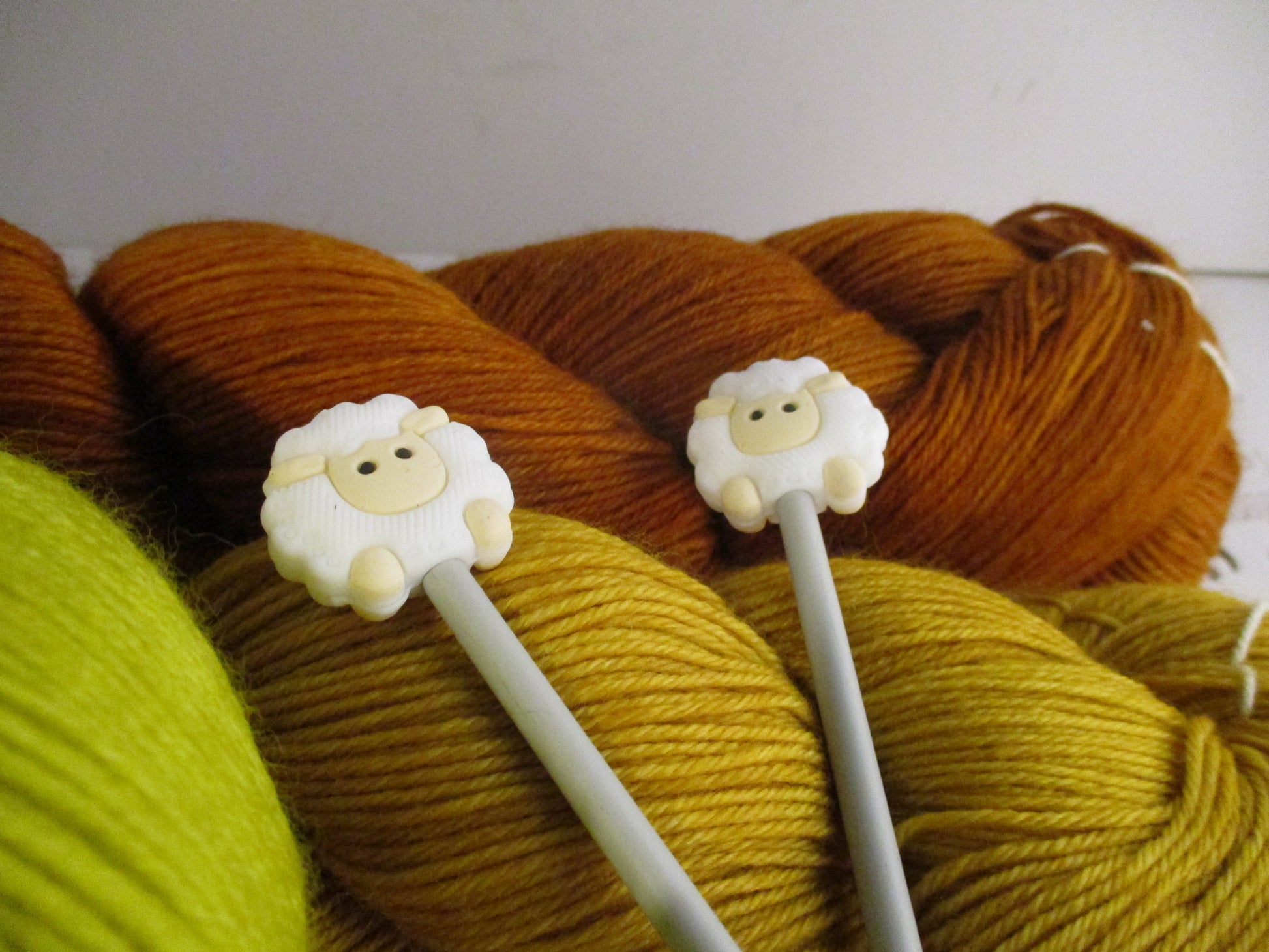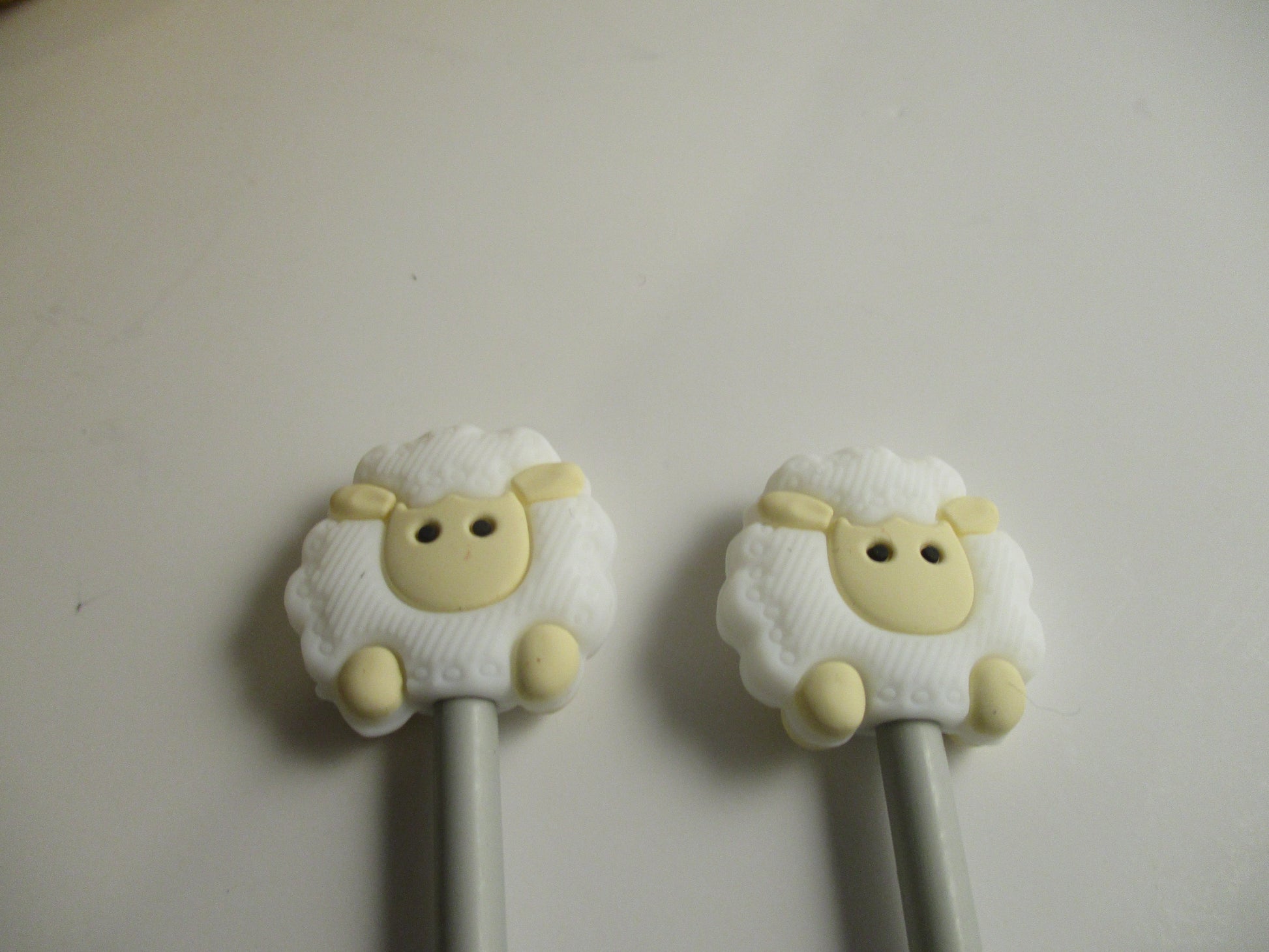 Pair of point protectors. Cute silicon sheep shaped protectors for your knitting needles. Prevents damage to needle tips when not in use, or to stop knitting sliding off. Suitable for 3mm - 4.5mm needles